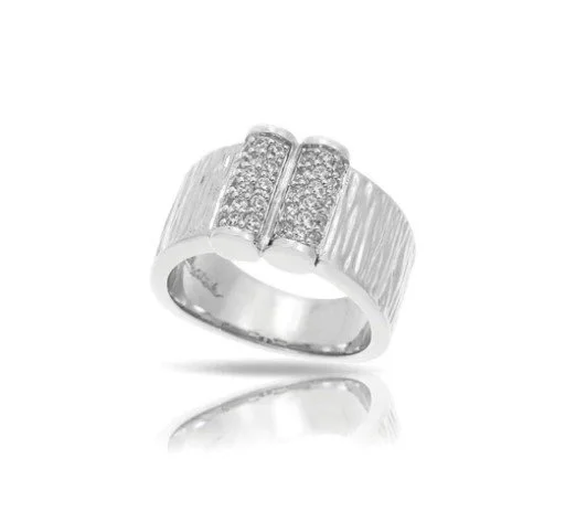 White: White stones pave-set into rhodium-plated, nickel allergy-free, 925 sterling silver.