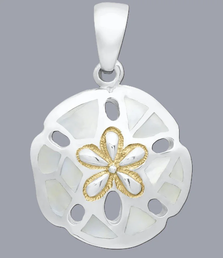 Sterling Silver 2 Tone & Mother of Pearl Sandollar Pendant